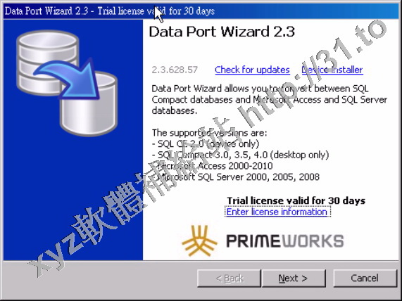 • Primeworks Data Port Wizard v2.3.615.57 英文正式版(將數據庫從伺服器和移動設備之間轉移的嚮導軟體)