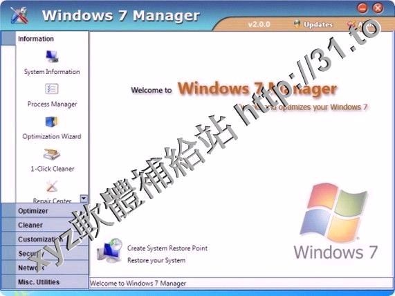 • Yamicsoft Windows 7 Manager v3.0.6 英文正式版(Widnows7 總管是優化和設置軟體)